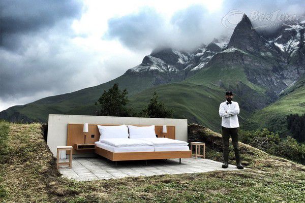 Nằm ở độ cao 2000m so với mực nước biển, chỉ với một chiếc giường, khách sạn không tường, không trần, không phòng tắm tại Thụy Sỹ đã đem đến trải nghiệm lạ lẫm cho du khách trên đỉnh núi cao.
