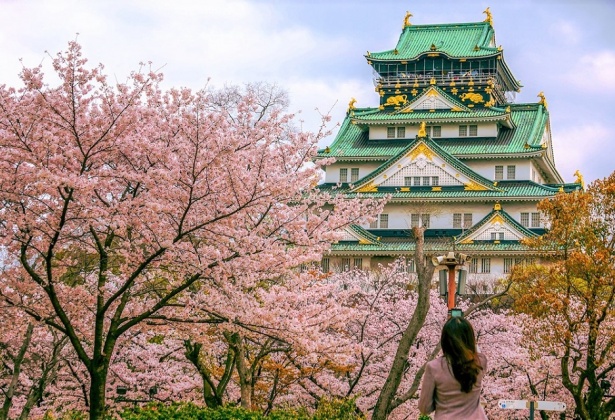 - Lâu đài Osaka Castle – hay còn gọi là lâu đài Hạc Trắng, là một trong những thành cổ nổi tiếng nhất nước Nhật, đóng một vai trò quan trọng trong việc thống nhất Nhật Bản vào cuối thế kỷ XVI. Đây là một điểm du lịch vô cùng hấp dẫn và thu hút hàng trăm nghìn khách du lịch Nhật Bản đến đây mỗi năm.( chụp hình bên ngoài)